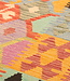 Prachtig handgeweven traditionele kelim tapijt uit Afghanistan, prachtige zachte kleuren, zeker geen 'harde' stof zoals de meeste kelims!, maar tijdloos en geschikt voor alle soorten interieurstijlen dankzij de kleuren
