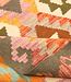 met milieuvriendelijke plantaardige kleurstoffen, bevat deze kelim ingewikkelde