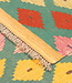 met milieuvriendelijke plantaardige kleurstoffen, bevat deze kelim ingewikkelde
