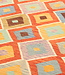 met milieuvriendelijke plantaardige kleurstoffen, bevat deze kelim ingewikkelde