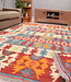 met milieuvriendelijke plantaardige kleurstoffen, bevat deze kelim ingewikkelde