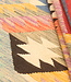 met milieuvriendelijke plantaardige kleurstoffen, bevat deze kelim ingewikkelde