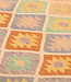 met milieuvriendelijke plantaardige kleurstoffen, bevat deze kelim ingewikkelde