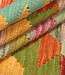 met milieuvriendelijke plantaardige kleurstoffen, bevat deze kelim ingewikkelde