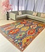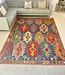 Dit elegante, kleurrijke en unieke handgeweven Afghaanse kelimkleed uit Afghanistan is gemaakt van Ghazni-wol, dat bekend staat als de beste wol in deze regio.