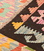 met milieuvriendelijke plantaardige kleurstoffen, bevat deze kelim ingewikkelde