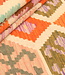met milieuvriendelijke plantaardige kleurstoffen, bevat deze kelim ingewikkelde