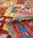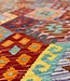 Dit elegante, kleurrijke en unieke handgeweven Afghaanse kelimkleed uit Afghanistan is gemaakt van Ghazni-wol, dat bekend staat als de beste wol in deze regio.