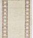 De rand van het vloerkleed is versierd met een klassieke combinatie van beige en bruin, waardoor het centrale gedeelte met ingetogen elegantie wordt omlijst. Deze aardetinten roepen een gevoel van warmte en rust op en creëren een gastvrije sfeer in elke kamer.