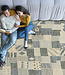 Dit vloerkleed heeft een abstract ontwerp dat het oog boeit door zijn dynamische compositie. In plaats van de traditionele vierkante vorm heeft het ongelijke vierkanten van verschillende afmetingen en onregelmatige lijnen. In elke doos vind je een charmante reeks vormen, van geometrische vormen tot organische patronen, waardoor een visueel stimulerende en unieke esthetiek ontstaat.
