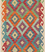 Breng tijdloze elegantie en levendige energie in huis met dit handgeweven kilim vloerkleed. Met een afmeting van 244x80 cm toont dit authentieke platte tapijt traditionele geometrische patronen in opvallende kleuren zoals oranje, turquoise, rood en paars. Perfect als loper voor de gang, boho vloerkleed of decoratief accent, een veelzijdige toevoeging aan moderne en eclectische interieurs. Gemaakt van 100% wol, duurzaam en ambachtelijk vervaardigd – een uniek ontwerp dat karakter toevoegt aan elke ruimte.
