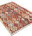 Dit unieke Afghaanse Kelim vloerkleed van 299x204 cm is handgeweven met een opvallend tribal diamantmotief in tinten van rood, ivoor, lavendel, olijfgroen en oranje. Gemaakt van 100% natuurlijke wol, straalt dit vloerkleed zowel vakmanschap als karakter uit. Ideaal voor bohemian, rustieke of artistieke interieurs die kleur en cultuur waarderen.