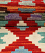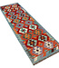 Breng karakter in huis met deze opvallende handgeweven kilim loper van 245x75 cm. De tribale medaillonpatronen in levendige kleuren zoals rood, turquoise, oranje, zwart en crème zorgen voor een krachtige visuele uitstraling. Gemaakt van 100% wol, met traditionele platweeftechniek. Perfect voor bohemian, etnische of landelijke interieurs, vooral in gangen, keukens of smalle ruimtes.