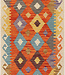 Breng kleur en karakter in je interieur met dit levendige handgeweven kilim vloerkleed van 230x82 cm. Dit platte tapijt is rijk aan tribale en diamantvormige patronen in warme tinten zoals oranje, geel, blauw en paars. Gemaakt van 100% wol, perfect voor gangen, entrees of smalle ruimtes. Het artisanale ontwerp past perfect bij boho-, landelijke, etnische of moderne interieurs. Dit duurzame en milieuvriendelijke vloerkleed is een uniek kunstwerk voor je vloer.