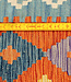 Breng kleur en karakter in je interieur met dit levendige handgeweven kilim vloerkleed van 230x82 cm. Dit platte tapijt is rijk aan tribale en diamantvormige patronen in warme tinten zoals oranje, geel, blauw en paars. Gemaakt van 100% wol, perfect voor g Lees meer..