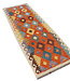 Breng kleur en karakter in je interieur met dit levendige handgeweven kilim vloerkleed van 230x82 cm..