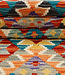 Breng leven in huis met deze opvallende handgeweven kilim loper (248x84 cm). Het kleed is rijkelijk versierd met geometrische diamanten en kleurrijke accenten in oranje, rood, turquoise, zwart, violet en geel. Dankzij het vlakweefsel van 100% wol is het v Lees meer..