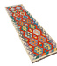 Geef je gang of hal een frisse, kleurrijke uitstraling met deze handgeweven kilim loper (241x72 cm). De levendige kleurencombinatie van rood, geel, paars en turquoise komt prachtig tot zijn recht in het traditionele tribale patroon. Een perfecte toevoeging aan een bohemien of werelds interieur.
