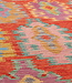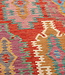 Dit elegante, kleurrijke en unieke handgeweven Afghaanse kelimkleed is gemaakt van Ghazni-wol, die bekend staat als de fijnste wol uit deze regio.