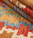 De kelims zijn geverfd met natuurlijke kleurstoffen, zoals boomschors, fruit, groenten en andere plantaardige bronnen. Dit resulteert in prachtige combinaties van verschillende kleuren.