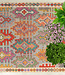 met milieuvriendelijke plantaardige kleurstoffen, bevat deze kelim ingewikkelde