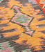 met milieuvriendelijke plantaardige kleurstoffen, bevat deze kelim ingewikkelde