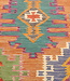 met milieuvriendelijke plantaardige kleurstoffen, bevat deze kelim ingewikkelde